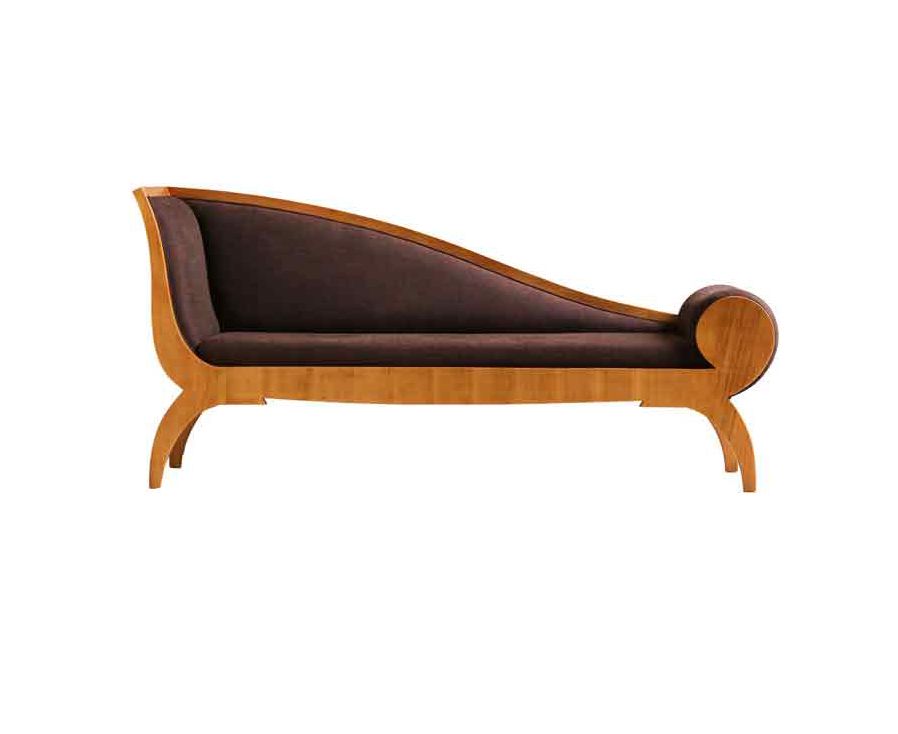 Кушетка с каркасом, выполненныи извишневого дерева. Мягкое сиденье и спинка в обивке из кожи или ткани. Модель смотрится элегантно и изысканно благодаря плавным линиям и притяным очертаниям.