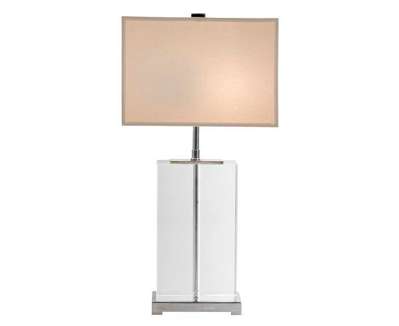 Настольная лампа в современном стиле без излишеств. Четкие прямые линии. В основе дизайна лежит простая геометрическая фигура. Продуманное сочетание стекла, металла и текстиля.