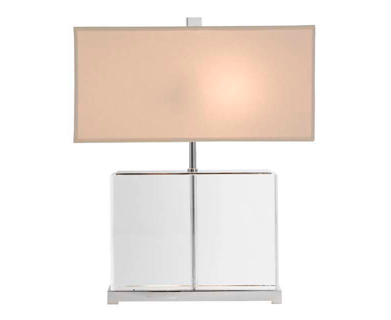 Настольная лампа в современном стиле без излишеств. Четкие прямые линии. В основе дизайна лежит простая геометрическая фигура. Продуманное сочетание стекла, металла и текстиля.
