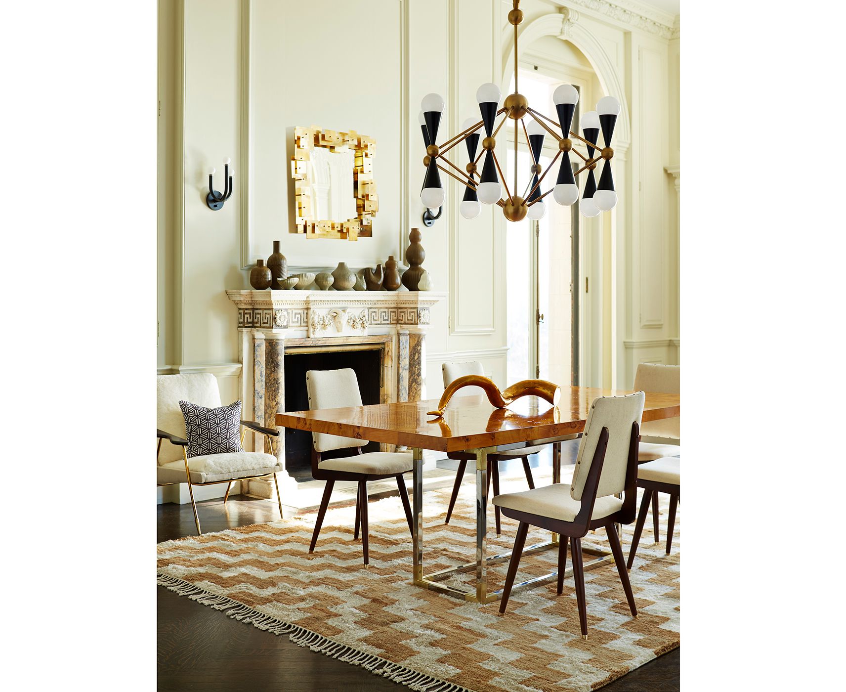 Минималистский мир из треснутой древесины, акрила, латуни и никеля. Укороченный топ из маплы и с удивительно прочной матовой отделкой на полированной никелевой основе с матовыми латунными углами. Съемная 20-дюймовая створка позволяет удобно расположить до 10 человек. Идеально подходит для роскошного пентхауса или роскошного лофта.