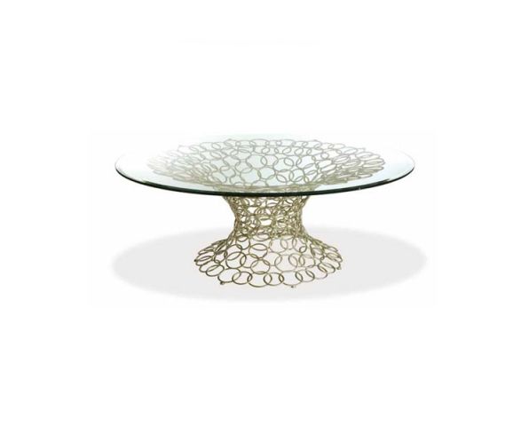 Экстровагантный обеденый стол Mondrian Art Form выполнен в современном стиле. Стол состоит из ножки и столешницы. Оригинальная дизайнерская ножка создана из множества круглых железных колец толщиной 8 мм и повторяет форму столешницы. Столешница из прозрачного крепкого стекла может быть круглой или овальной формы. Отделка выполнена вручную. Доступны разные размеры.