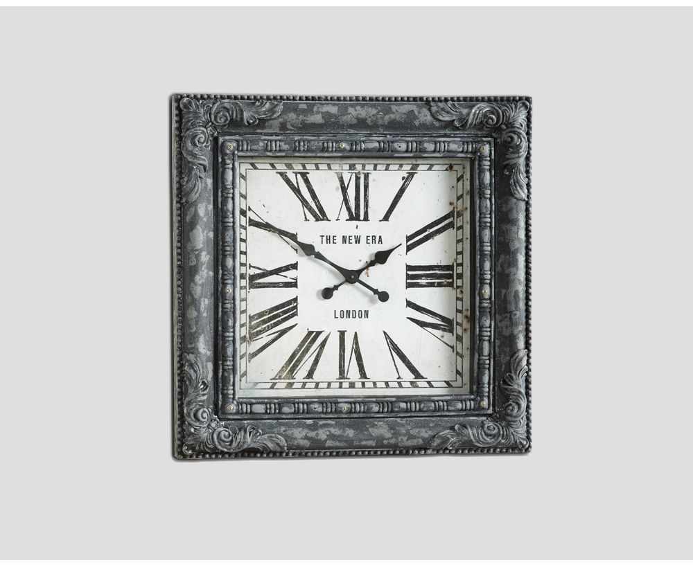 Orologio quadrato da muro, in resina naturale finitura laccato Grigio decapato, quadrante bianco con vetro