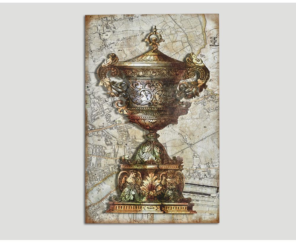 Pannello rettangolare in legno con rilievo in metallo decorato