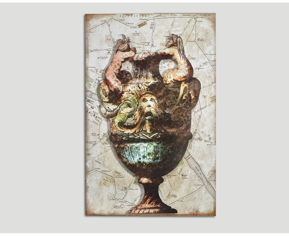 Pannello rettangolare in legno con rilievo in metallo decorato