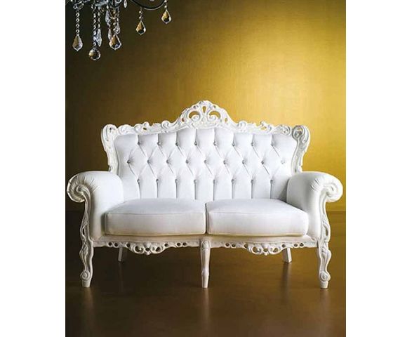 Шикарный двухместный диван с резным каркасом. Модель выполнена в классическом стиле и создает в помещении королевскую атмосферу. Мягкая спинка украшена декоративными пуговицами. Каркас состоит из пяти ножек: три спереди и две сзади. Доступна версия двухместного дивана в таком же стиле.