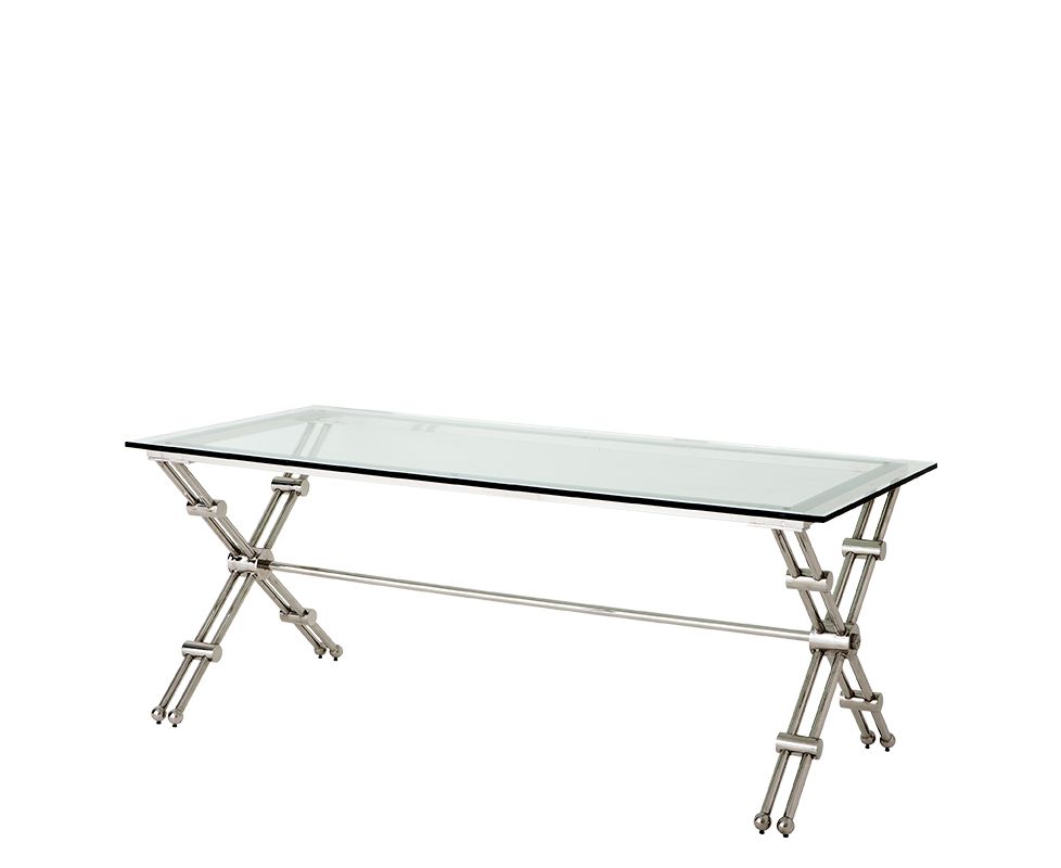 Дизайнерский письменный стол, выполненный из стекла и металла. Современный стиль, продуманный дизайн без излишеств. Строгие и четкие линии. Тонкие трубчатые сдвоенные ножки.