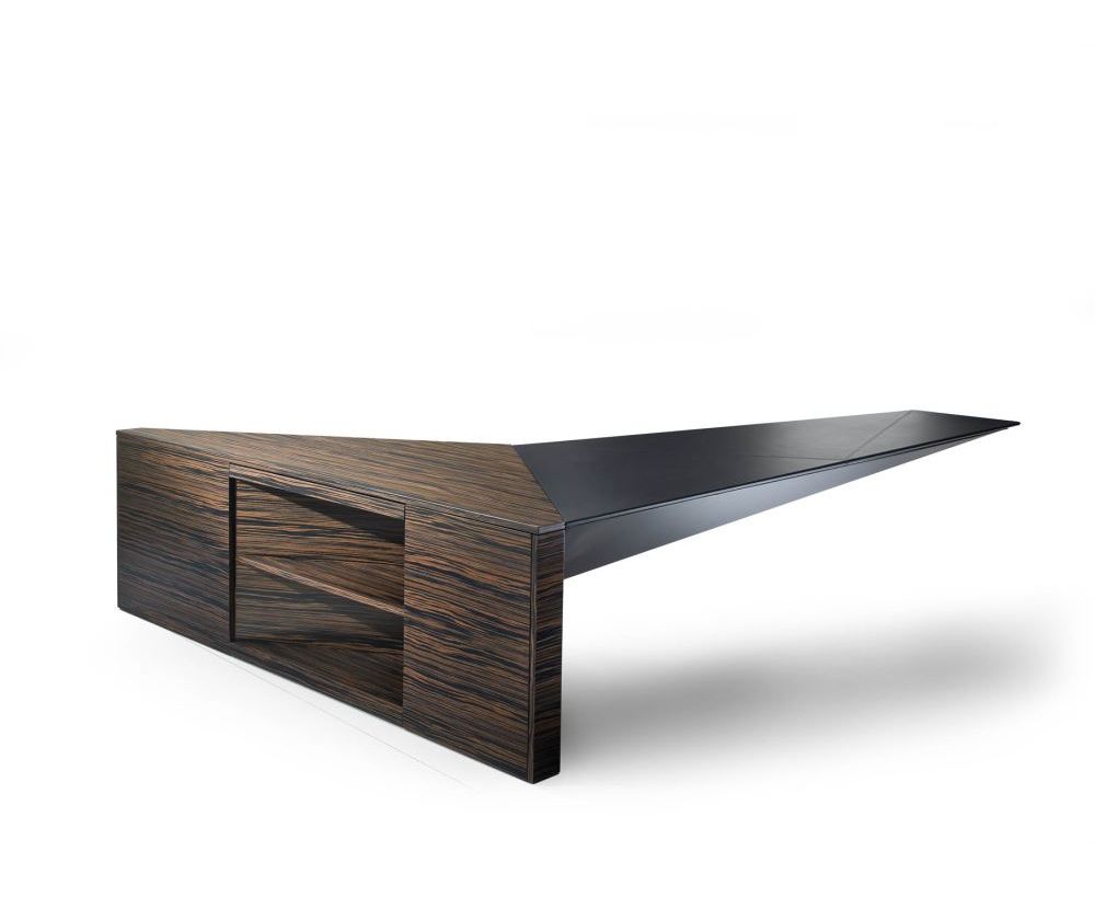 Стол, который выходит за рамки функции, превращается в настоящую скульптуру, привилегированное произведение, физическое присутствие. Это Euclideo, дизайн Ferruccio Laviani: это эволюция исполнительной системы в направлении современной концепции мебели, которая менее связана с традиционной иконографией этой функциональной типологии. «Именно сочетание двух томов дает жизнь, с одной стороны, рабочей поверхности в отличие от шкафа, заместителя контейнера. Ограненные твердые частицы, которые проникают, определяя объемы и пространства, которые, в свою очередь, разграничивают функции », - объясняет архитектор Ферруччо Лавиани.