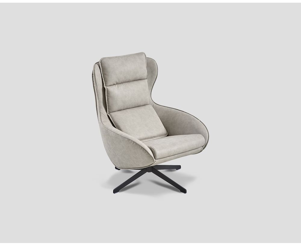Poltrona in ecopelle, rivestimento color Grigio Chiaro, struttura in metallo finitura antracite.