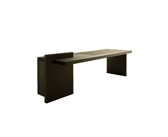 В коллекцию офисной мебели H_O входят: письменные столы, столы для переговоров, шкафы. Столешницы столов представляют собой "сэндвич" из многослойной фанеры тополя с металлическими усилениями и наружной поверхностью из МДФ. Поверхность отделана кожей серо-оливкового или цвета кофе. Несущая колонна столов изготовлена из вулканического порфира, каштаново-пурпурного цвета или белого цвета с бежевым оттенком. Отделка деревянных частей производится в шпоне дуба пепельного оттенка для светлой комбинации кожи и камня или в шпоне Louro Petro для темной версии коллекции.