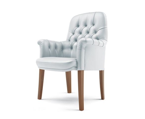 Корпус выполнен из выдержанного бука. Набивка с использованием пенополиуретана различной плотности. Сиденье для упругости снабжено эластичными ремнями. Свойства: Visitor возможен только с фиксированными ножками в цвете под средний орех (04).