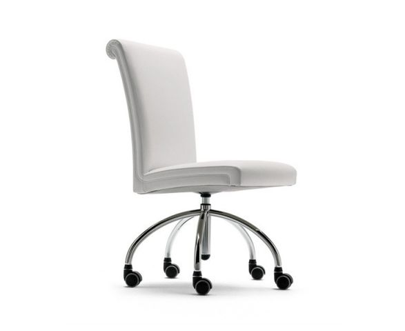 Корпус выполне из бука с элегантным "завитком". Пятилучевая металлическая база возможна в 9 различных отделках (хром, черный и 7 цветов RAL). Эластичные ремни придают упругость сиденью и спинке. Набивка с использованием пенополиуретана. Кресла имеют обитые кожей металлические подлокотники. Полностью вращается. Кресло имеет регулировку по высоте. Установлено на самотормозящие вращающиеся колеса в мягкой отделке, но по запросу колеса могут быть также в твердой отделке или, как альтернатива, — без механизма торможения в твердой или мягкой отделке. Модель может быть также на глайдах, что делает ее ниже на 2 см.