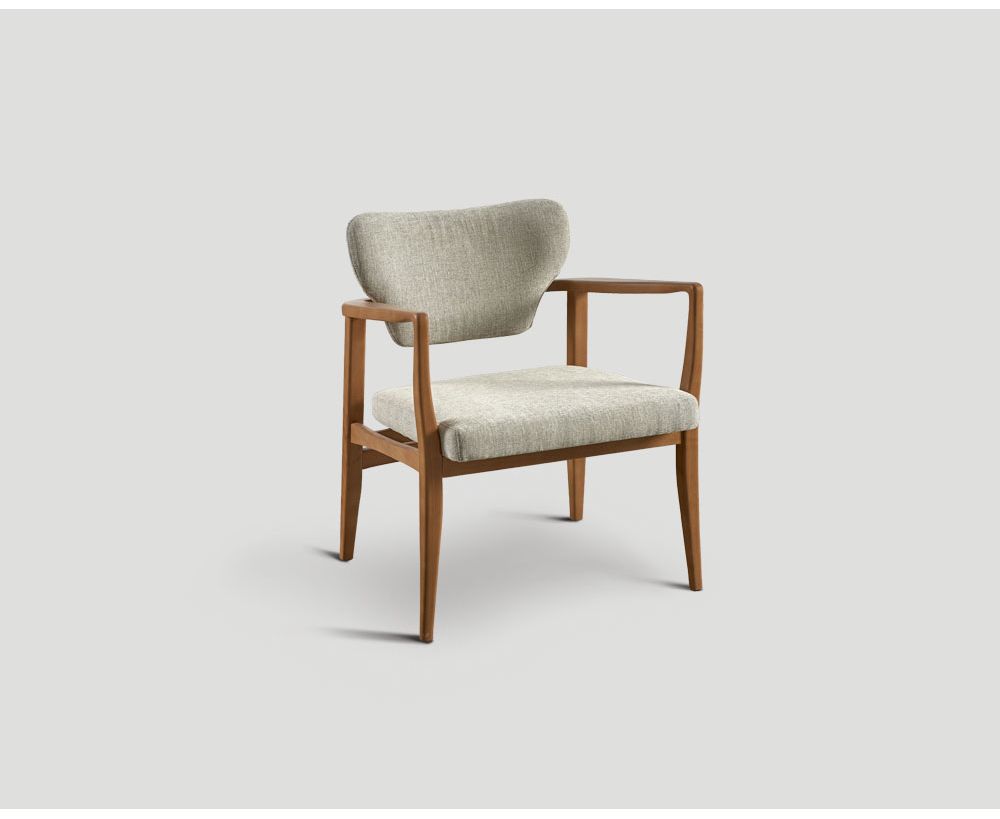 Poltroncina con struttura in faggio finitura legno Vintage con sedile e schienale in tessuto color Biscotto