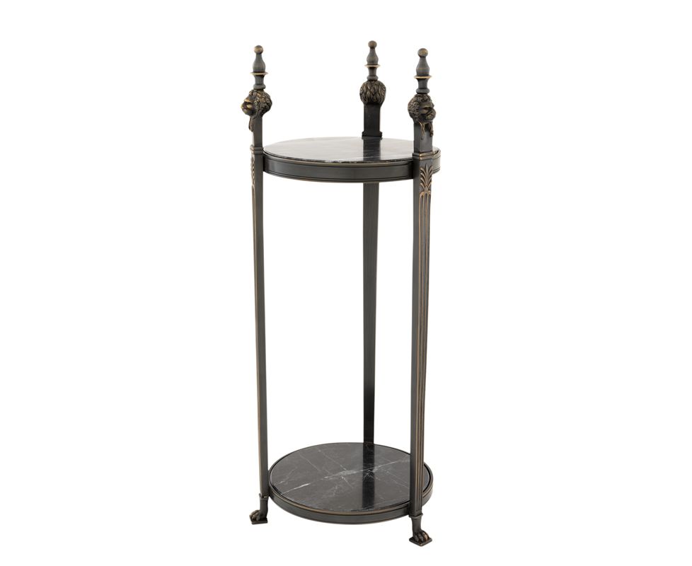 Дизайнерский стол с декоративными элементами в виде голов и лап льва. Столик смотрится смело и оригинально. Он может стать самостоятельной деталью интерьера или же его частью. Две столешницы из мрамора.
