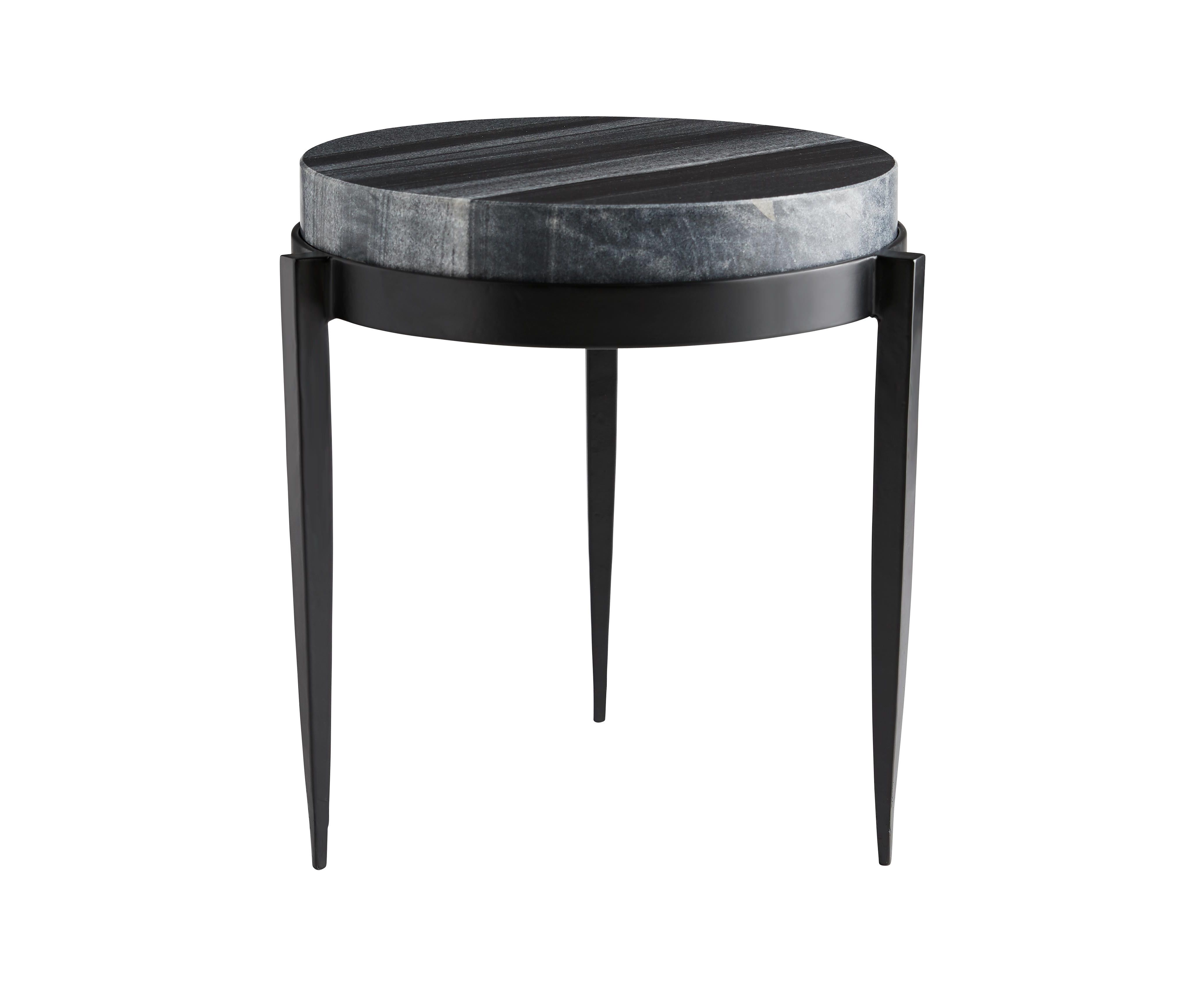 Стол Kelsie Accent - воплощение наиболее существенного дизайна и формы, поскольку круглый черный мрамор опирается на основание с тремя ножками из матового железа. Вдохновленные уникальными прожилками, которые плавно движутся по столу между оттенками черного, серого и белого, дизайнеры назвали эту смесь «Galaxy Marble». Для полного классического и слегка космического эффекта соберите их вместе с соответствующим коктейльным столом (6904) и приставным столом (6905). Также доступно в белом мраморе. Отделка и мрамор могут отличаться.