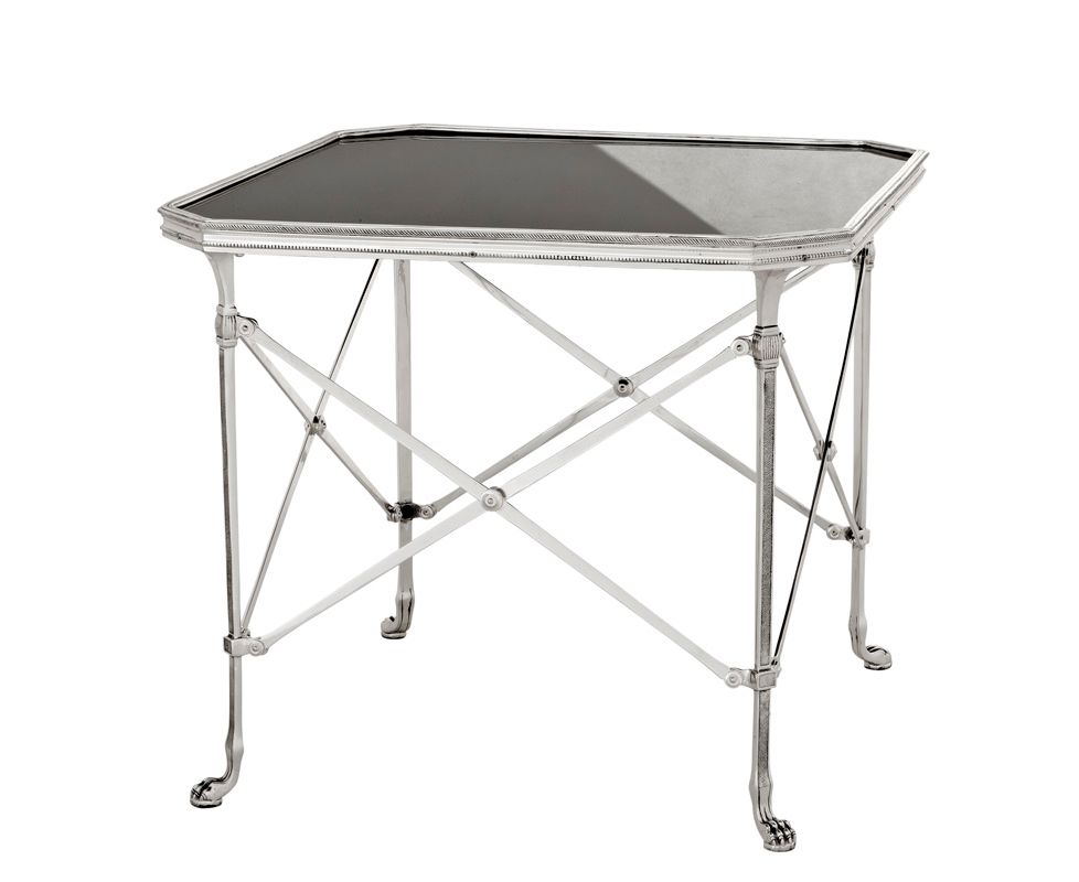 Приставной столик Monte Carlo простой незамысловатой формы. Спокойный строгий дизайн позволяет модели вписаться в любой интерьер. Тонкие ножки из металла. Столешница выполнена из черного стекла.