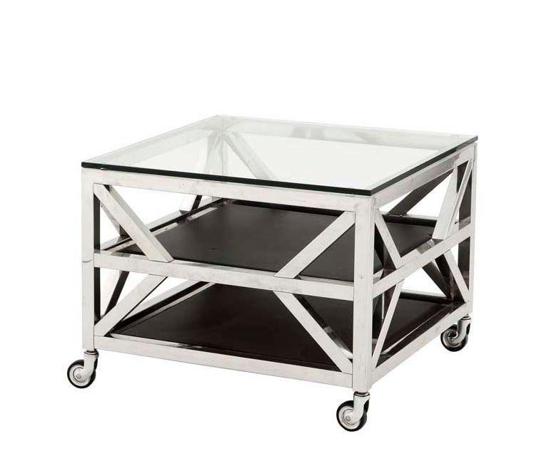 Приставной столик Prado имеет классический дизайн, переделанный на под современность. Модель отлично подойдет для современного и интерьера в стиле хай-тек. Столешница изготовлена из прозрачного стекла очень прочного и выносливого. Столик имеет колесики, что делает его мобильным и функциональным. Две полки под столешницей с покрытием из черной кожи.