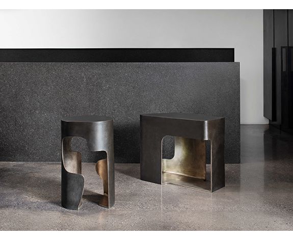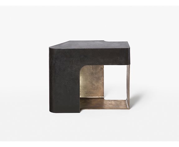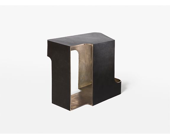Художественное выражение интерьера и экстерьера, сплошное и пустое, Rogue Side Table позволяет смотреть со всех сторон. Эта пьеса представляет собой динамическое взаимодействие позитивных и негативных пространств более строгого геометрического качества, чем ее кузен Ронин. Его внутренняя поверхность была натерта, чтобы показать соблазнительный, солидный оттенок бронзы, в то время как его внешняя поверхность - темная патина поверх текстуры, присущей процессу литья.
