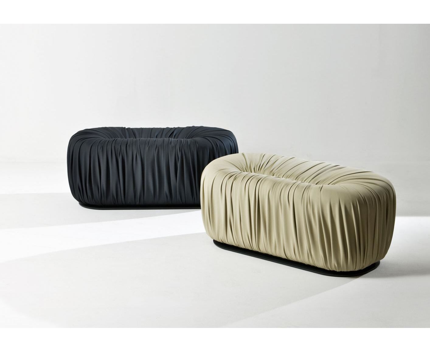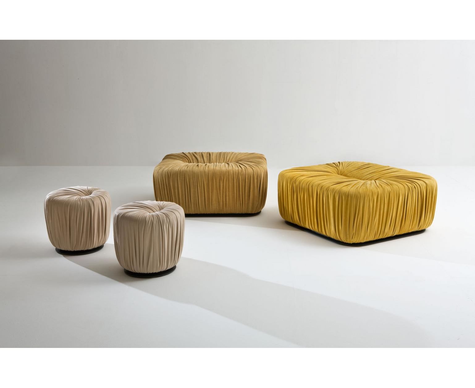 Drapé – это набор мягких пуфов с отделкой из кожи или бархата и основанием из металла. Доступны разных форм и размеров. Большое разнообразие кожи и тканей, так же как и формы и размеров позволяет реализовывать различные решения и удовлетворять требования каждого клиента, а также прекрасно вписываться в различные интерьеры. Это особенно подходящие для жилых помещений и залов ожидания предметы мебели, предлагающие удобное и необыкновенно элегантное сиденье