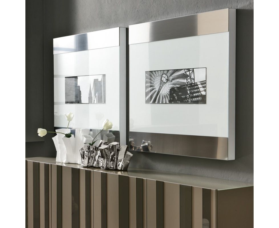 Лакированная деревянная рама со стеклом, 2 стальные рамки с черно-белыми изображениями. Доступные цвета: белый.