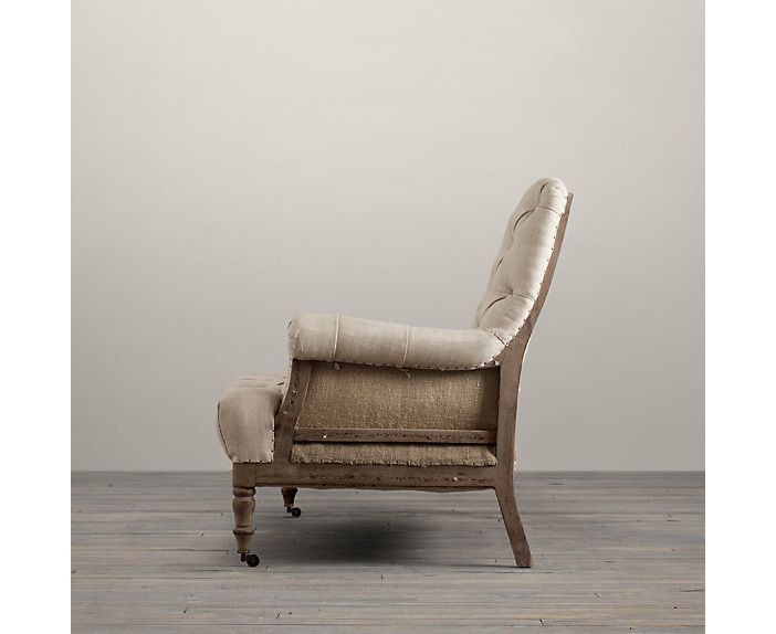 Вдохновленный, неприкрытой красотой кресла в стиле 19-го века, освобожденного от его бархатной обивкой с открытым каркасом - Deconstructed Shelter Arm Sofa воспроизвел артистизм Старого Света. Характер опровергает комфорт. Каркас сделан из массива ореха и дополняется фактурой мешковины. Это мебель на века. Особенностью дивана являются и его стеганые подушки сиденья, которые отличаются повышенной комфортабельностью. Внутри скрыт пружинный блок, наполнитель из вспененного ППУ и пера. Модель предлагается в 72 вариантах обивки из каталога производителя.