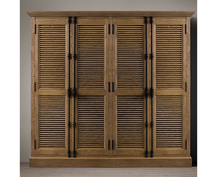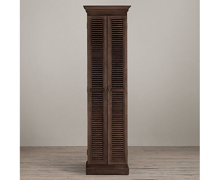 Жалюзи, архитектурная деталь, впервые использовавшаяся в Древней Греции, нашли новое место в доме. Шкаф простой по оформлению, но вместительный и удобный. Модель изготовлена из массива дуба. Одна зафиксированная и три регулируемых полки для хранения вещей.