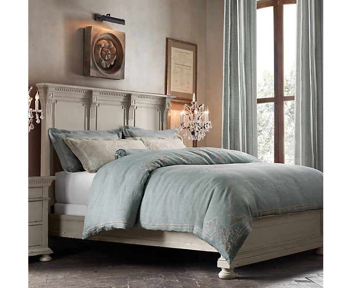 Двуспальная кровать из коллекции St. James Framed Panel Bed фабрики Restoration Hardware. Великолепный по масштабам и красоте дизайн архитектуры классицизма. Врезные столярные изделия ручной работы проходят несколько этапов обработки. Рифленые карнизы. Каждое изделие уникально и неповторимо.