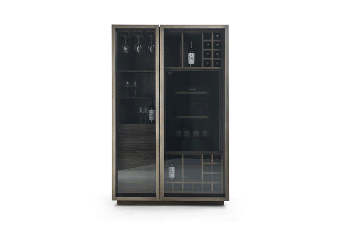Многофункциональный блок хранения с двойной стеклянной дверью, с цоколем и выдвижными ящиками с системой двойного выталкивания из цельной древесины. Фитинги для установки и внутренней конструкции предназначены для удовлетворения потребностей в хранении и функциональности, являясь винным хранилищем, вы можете вставлять отсеки для бутылок и бокалов. Также есть возможность вставить винный холодильник в версию Jumbo. Внутренние пространства освещаются светодиодной системой, расположенной по всей высоте внутренней стороны. Он активируется автоматически через датчики, когда дверь открывается. Также доступна в версии с металлическими дверями. Отделка: основа масла / натурального воска растительного происхождения с экстрактами сосны.