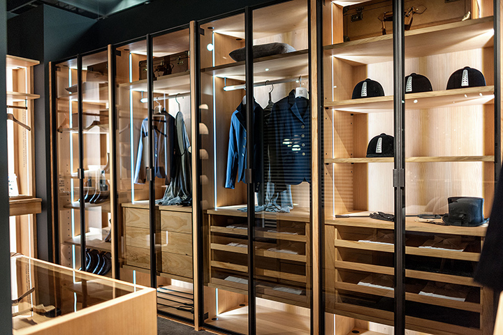 Система, изготовленная из массива древесины, панельной и многослойной с натуральными фитингами из ароматизированной кедровой древесины, предлагает практическую и модульную организацию различных элементов в зависимости от требований к хранению и размеру. Пространство организовано через структурные модули, которые объединены в различные решения для разработки, идеально подходящие для пространств. Ее можно настроить с помощью стеллажей для белья, держателей брюк, держателей рубашек и комодов из массива древесины с традиционными крепежными элементами. Отделка: на основе масла / натурального воска растительного происхождения с экстрактами сосны. Светодиодное освещение доступно по запросу.