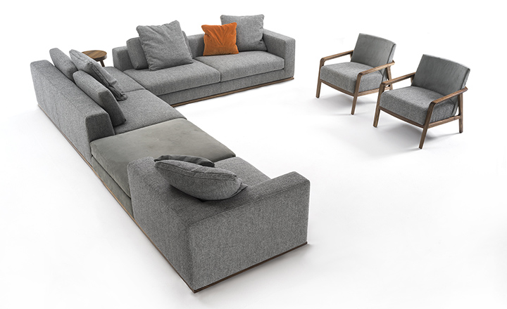 Динамичный и гибкий набор элементов. Благодаря своей решающей структуре и индивидуальности хамелеона он может адаптироваться к любой среде. Его конструкция исходит из совокупности идеально сбалансированных объемов, контролируемых отношениями и двойственностью между строгостью деревянных конструкций и мягкостью подушек и сидений. Богатое мастерство и пошив: суровое твердое деревянное сиденье уравновешивается мягкой амортизацией с высококачественными тканями и шитьем. Отделка: на основе масла / натурального воска растительного происхождения, сосновые экстракты.