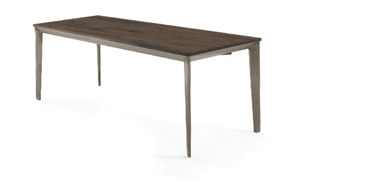 Раздвижной стол с верхом из массива древесины с склеенными досками и квадратными краями, с основанием из железа. Доступен как в фиксированной, так и в выдвижной версии, которая отличается инновационной и технологической системой, с алюминиевой рамой, оснащенной скользящим устройством, прекрасно интегрированным, которое позволяет удлинить стол на 100 см. Отделка: основа масла / натурального воска растительного происхождения с экстрактами сосны.