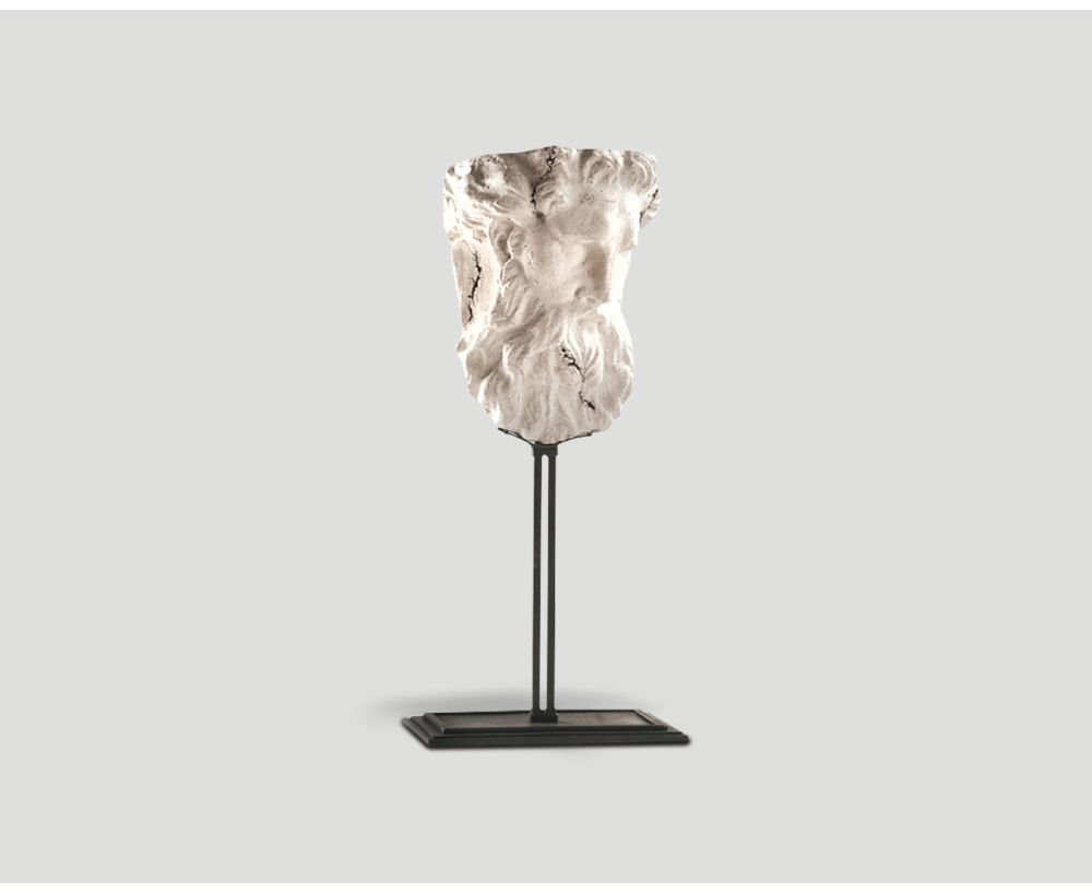 Scultura in agglomerato di travertino con supporto in metallo color Ferro Brunito