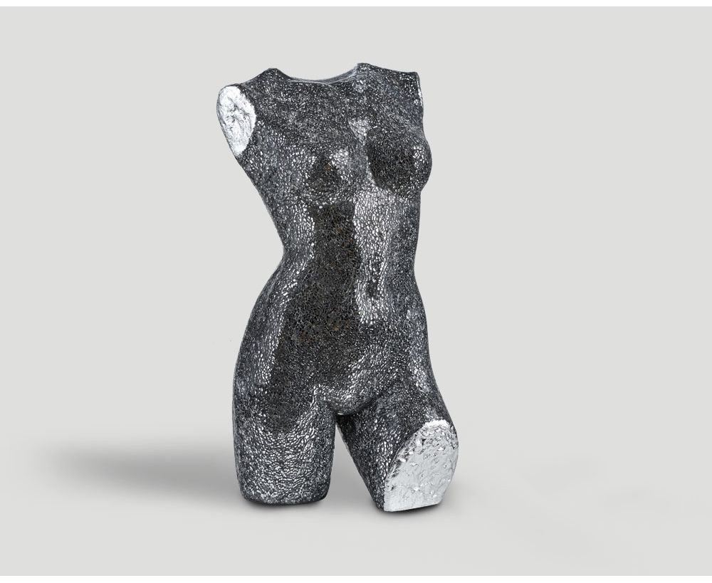 Scultura in resina naturale rivestita in scaglie di specchio Nero