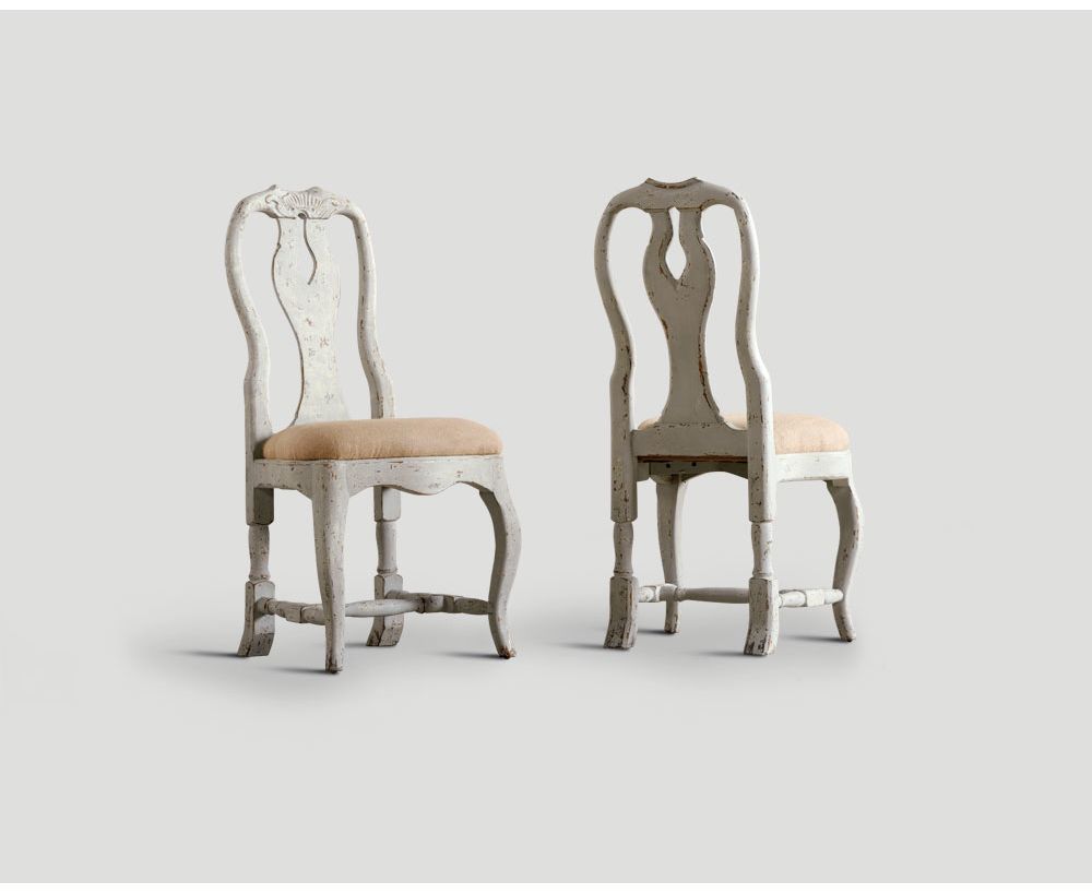 Sedia con struttura in faggio, finitura laccata Verde Chiaro Vissuto, rivestimento in tessuto color juta