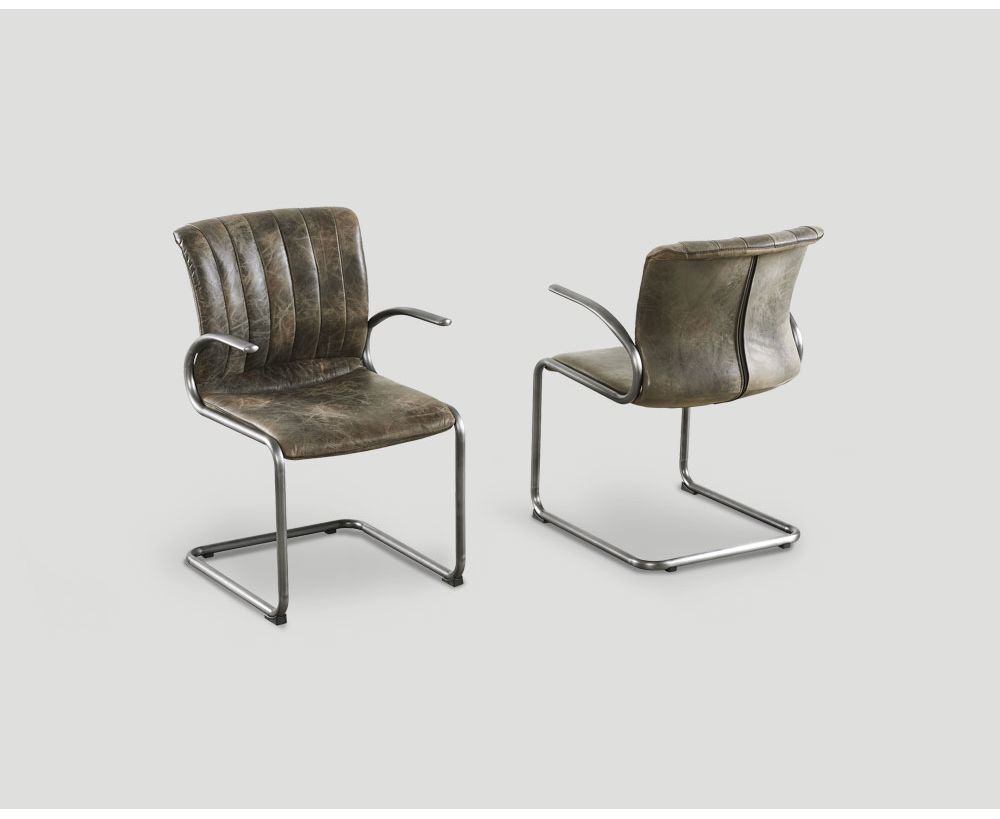 Sedie con braccioli e struttura in metallo finitura Ferro Naturale con rivestimento in vera pelle color Ebano Chiaro