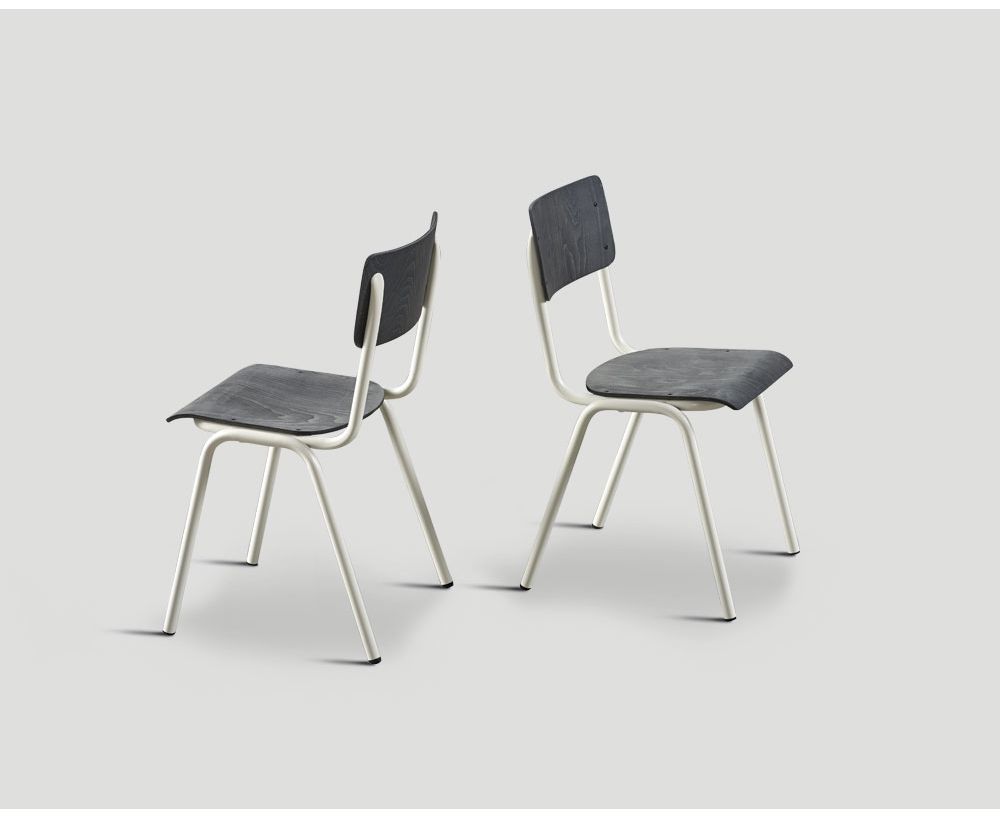 Sedia impilabile con struttura in metallo, seduta e schienale in faggio Vintage, Struttura laccata Bianco seduta e schienale Nero Vintage