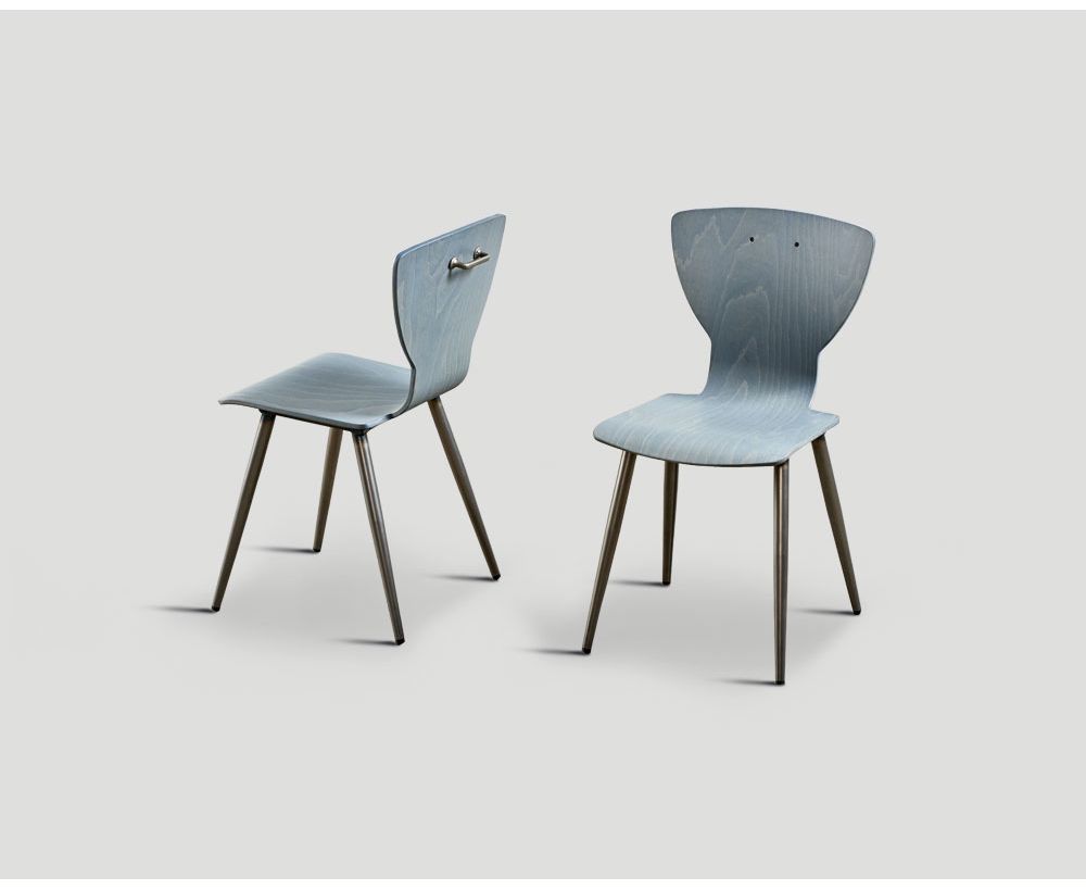 Sedia con struttura in metallo finitura ferro Naturale e seduta in faggio Avion Vintage