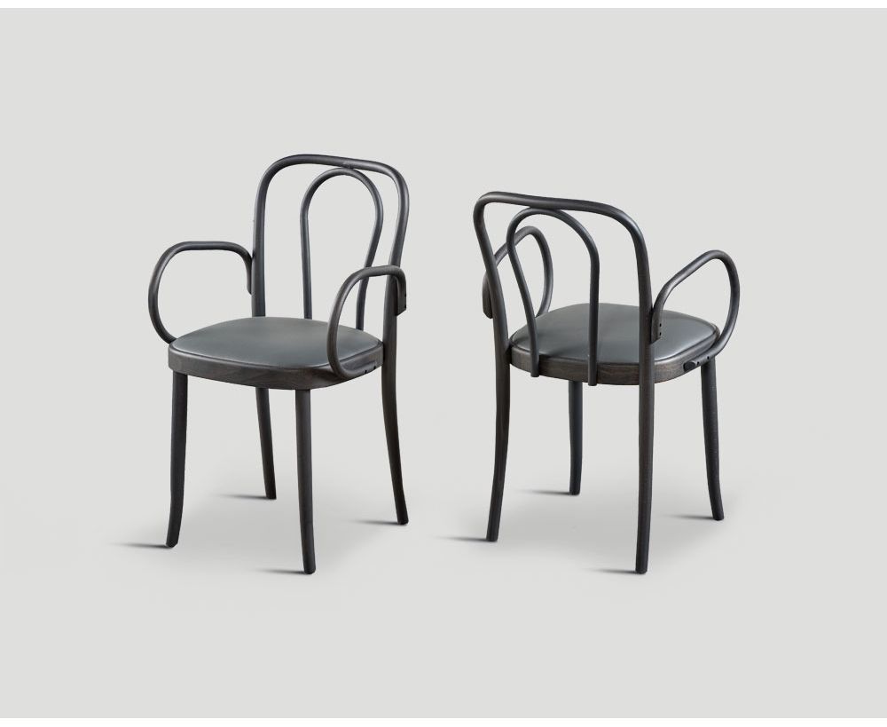 Sedia con braccioli struttura in faggio curvato, finitura Nero Vintage, seduta in ecopelle color Grigio Antracite