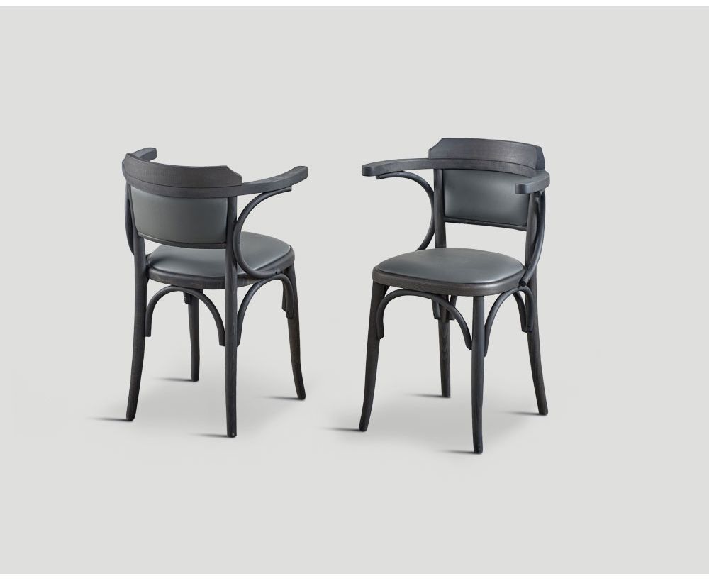Sedia con braccioli e struttura curvata, finitura Nero Vintage, sedile e schienale ecopelle Grigio Antracite