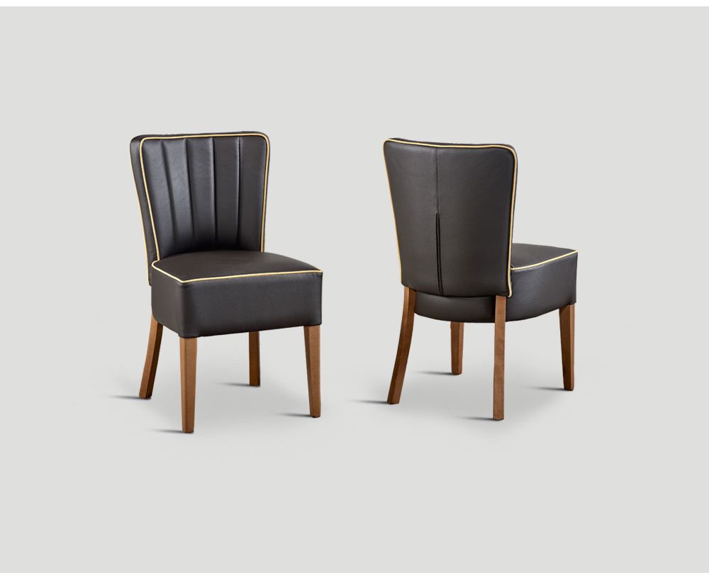 Sedia con struttura in faggio finitura Legno Vintage con sedile e schienale in ecopelle Testa di Moro e bordatura Beige