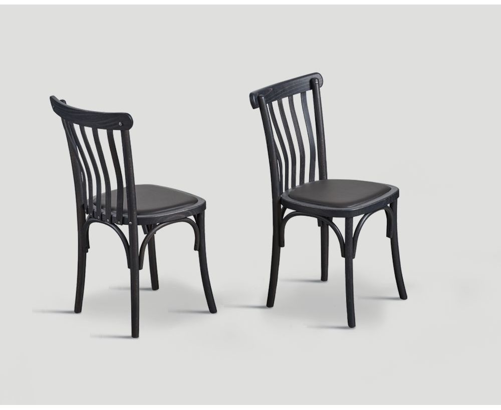 Sedia con struttura in faggio con seduta in ecopelle Grigio Antracite, finitura Nero Vintage