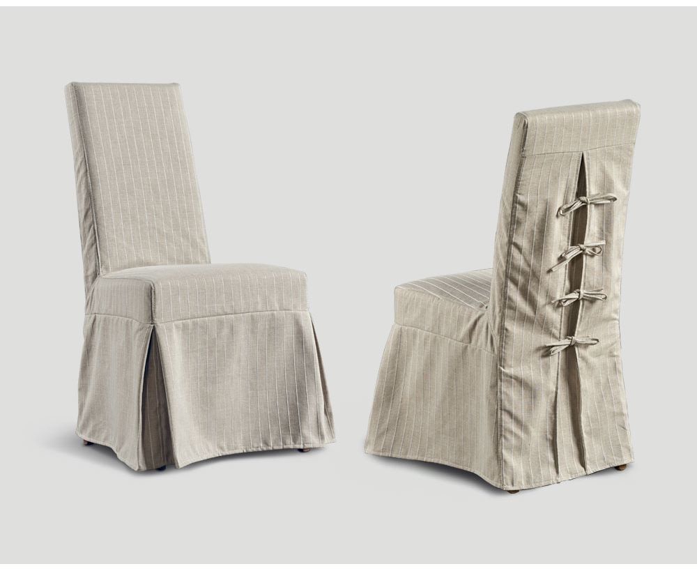 Sedia realizzata con struttura in legno con rivestimento sfoderabile in tessuto di colore ecrù rigato