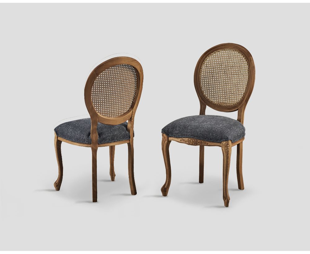 Sedia con struttura in faggio, rivestimento in tessuto e schienale in paglia di Vienna, finitura Legno Vintage, tessuto color Castano Brizzolato