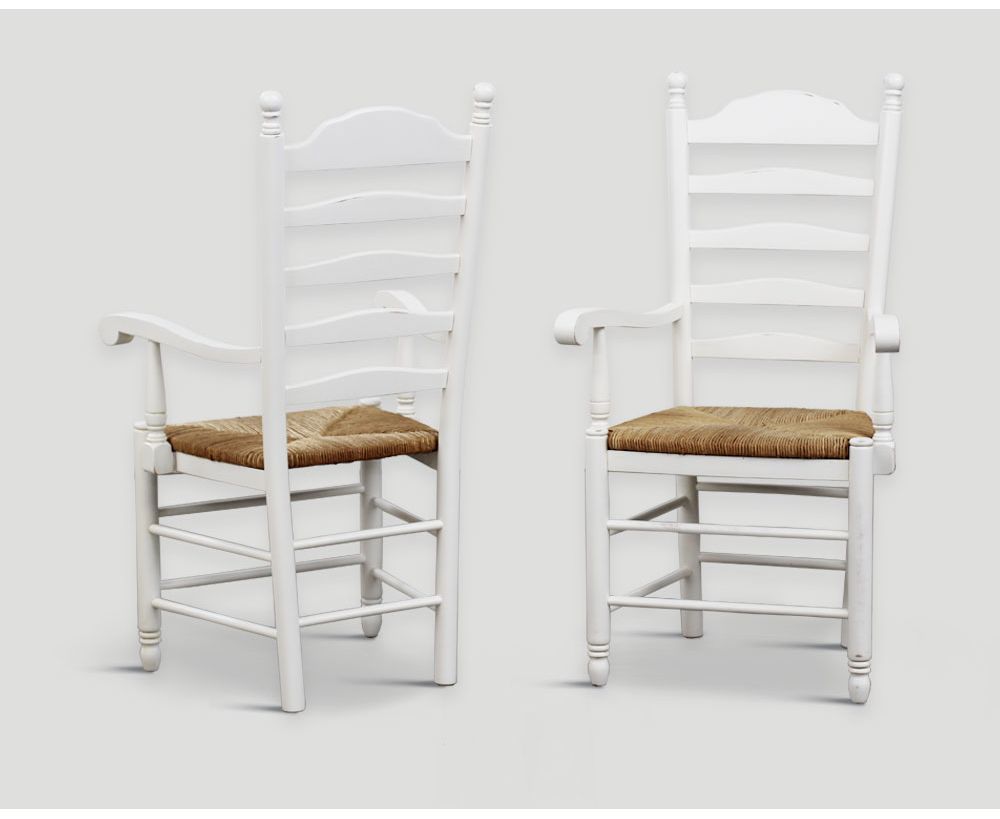 Sedia con braccioli e struttura in legno finitura laccata Bianco, seduta in paglia