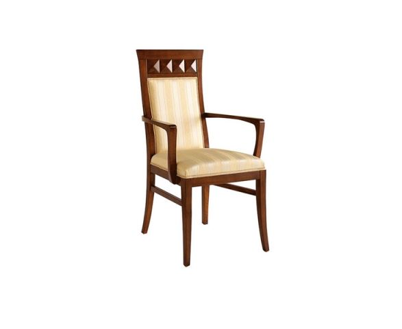 Удобный стул с подлокотниками Selva выполнен в классическом стиле. Каркас изготовлен из массива бука. В качестве наполнителя для сиденья использован литой по форме пенополиуретан. Мягкая высокая спинка наполнена пенополиуретаном, сверху она декорирована объемными элементами. Модель предлагается в текстильной обивке на выбор из коллекции фабрики. Прямые тонкие жесткие подлокотники. Деревянные части предлагаются в разной отделке на выбор по каталогу фабрики.
