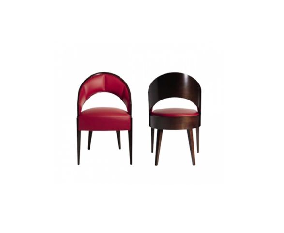 Стул с мягкой спинкой, отделанный шпоном вишни. Обивка может быть выполнена из кожи или текстиля.