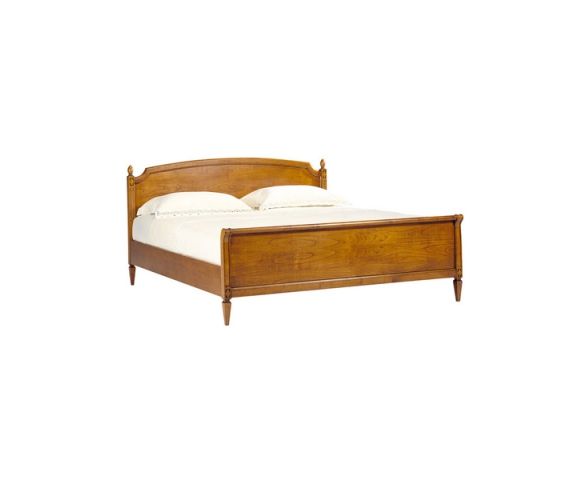 Двуспальная кровать Selva Timeless Beauty выполнена в стиле Директории, Вилла Боргезе. Каркас изготовлен из твердых пород липы, фанерованного шпоном вишни. Высота реечного основания может быть отрегулирована. Невысокое изголовье с вогнутыми уголками и декоративными резными элементами. Низкое прямоугольное изножье закруглено наверху. Кровать доступна в нескольких вариантах отделки на выбор из коллекции фабрики. Кровать стоит на красивых фигурных коротких ножках, сделанных из массива бука. Матрас и рейки не входят в комплект поставки.