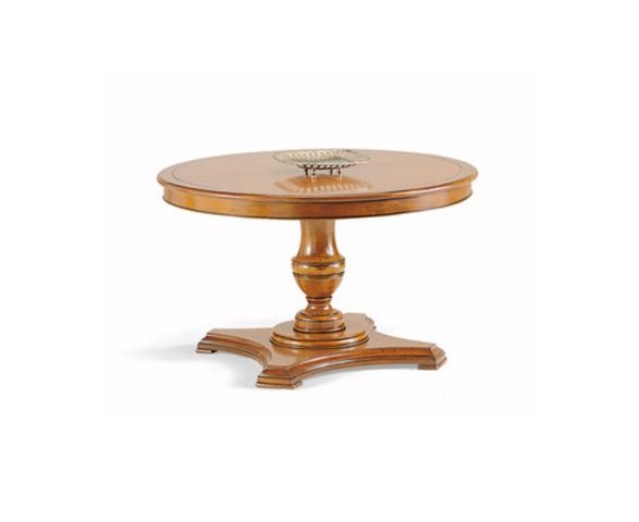 Обеденный стол Selva выполнен в классическом стиле времен Луи-Филиппа. Круглая столешница фанерована шпоном вишни. Она может быть раздвинута, открывая одну дополнительную вкладку. Стол поддерживает красивое фигурное основание на крестовине. Модель изготовлена из массива липы. Он предлагается в нескольких отделках, на выбор из коллекции фабрики.