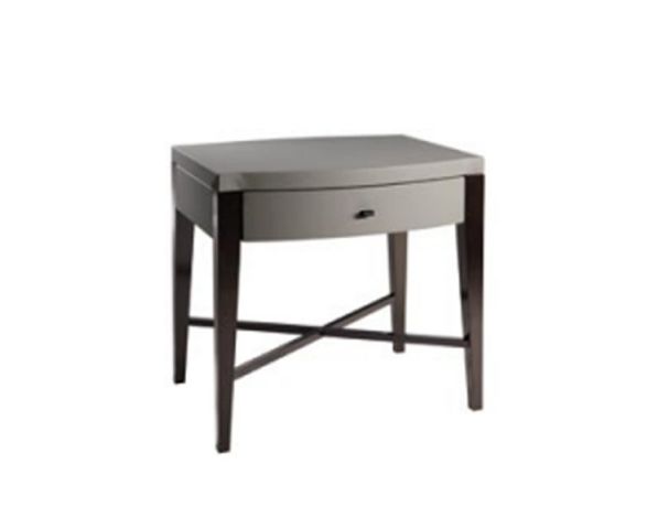 Тумбочка, выполненная в классическом стиле. Ножки и задняя панель из шпона вишни. Один ящик с самозакрывающимся механизмом. Боковые и передняя панели ящика могут быть отделаны кожей. Декоративная фурнитура может быть представлена в коже или в лаке.