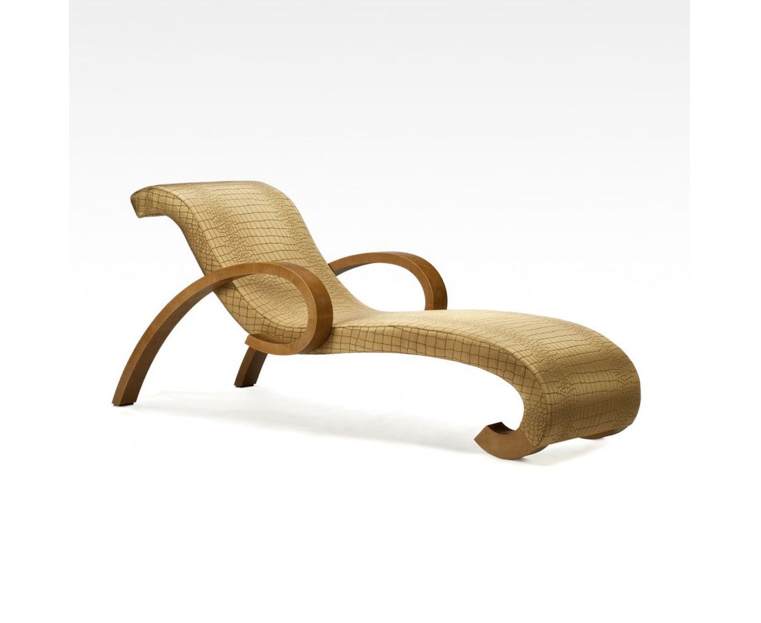Шезлонг с закругленными подлокотниками, лимитированная серия в 100 штук. Несъемная обивка. Предлагается версия с подлокотниками из массива березы фанерованными эбеновым деревом Макассар и с тканевой обивкой серого цвета; или версия с подлокотниками, покрытыми кожей Varanus цвета табака и обивкой из ткани в том же цвете; версия с подлокотниками покрытых серой кожей Varanus и обивкой из ткани серого цвета. Made in Italy.