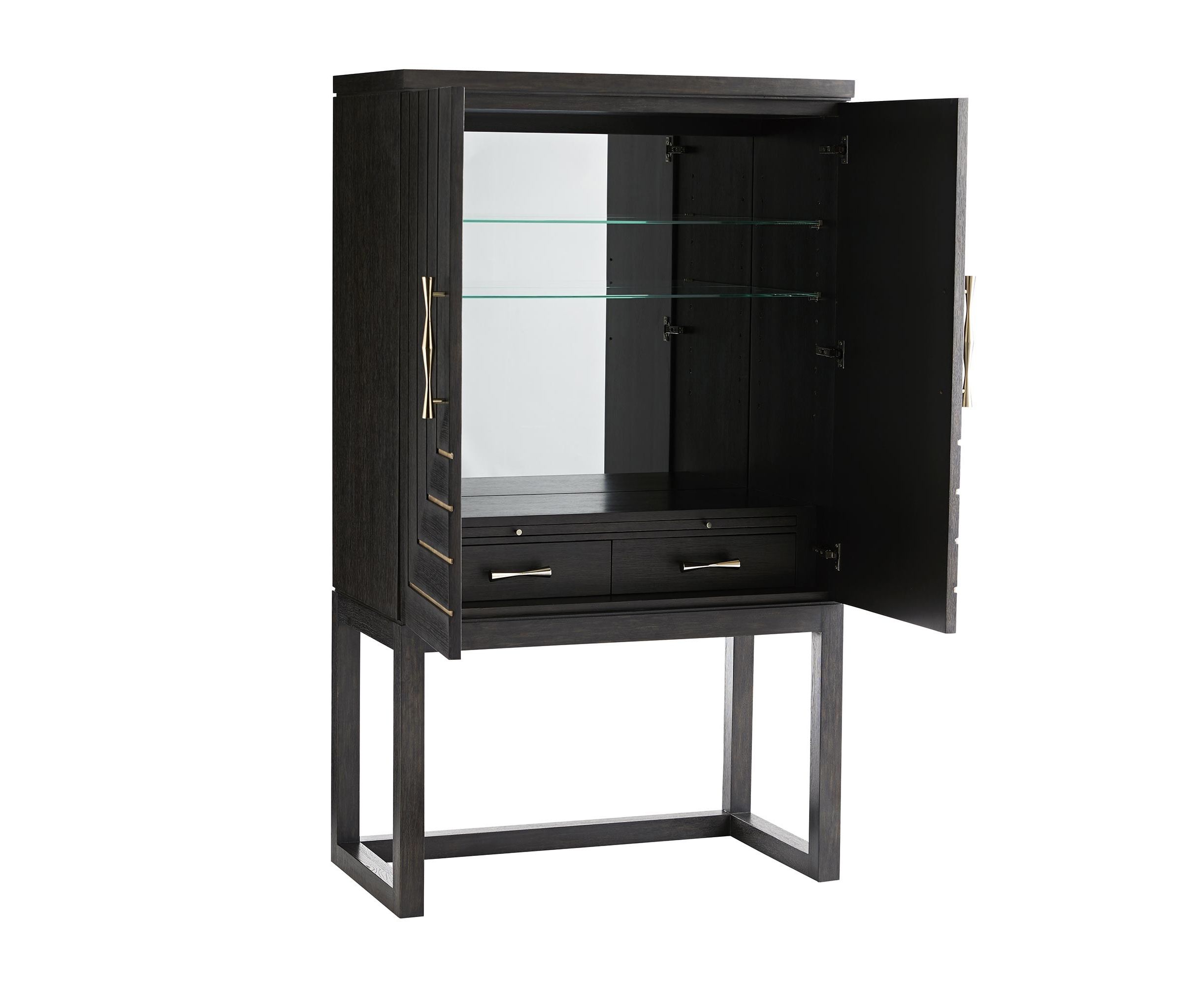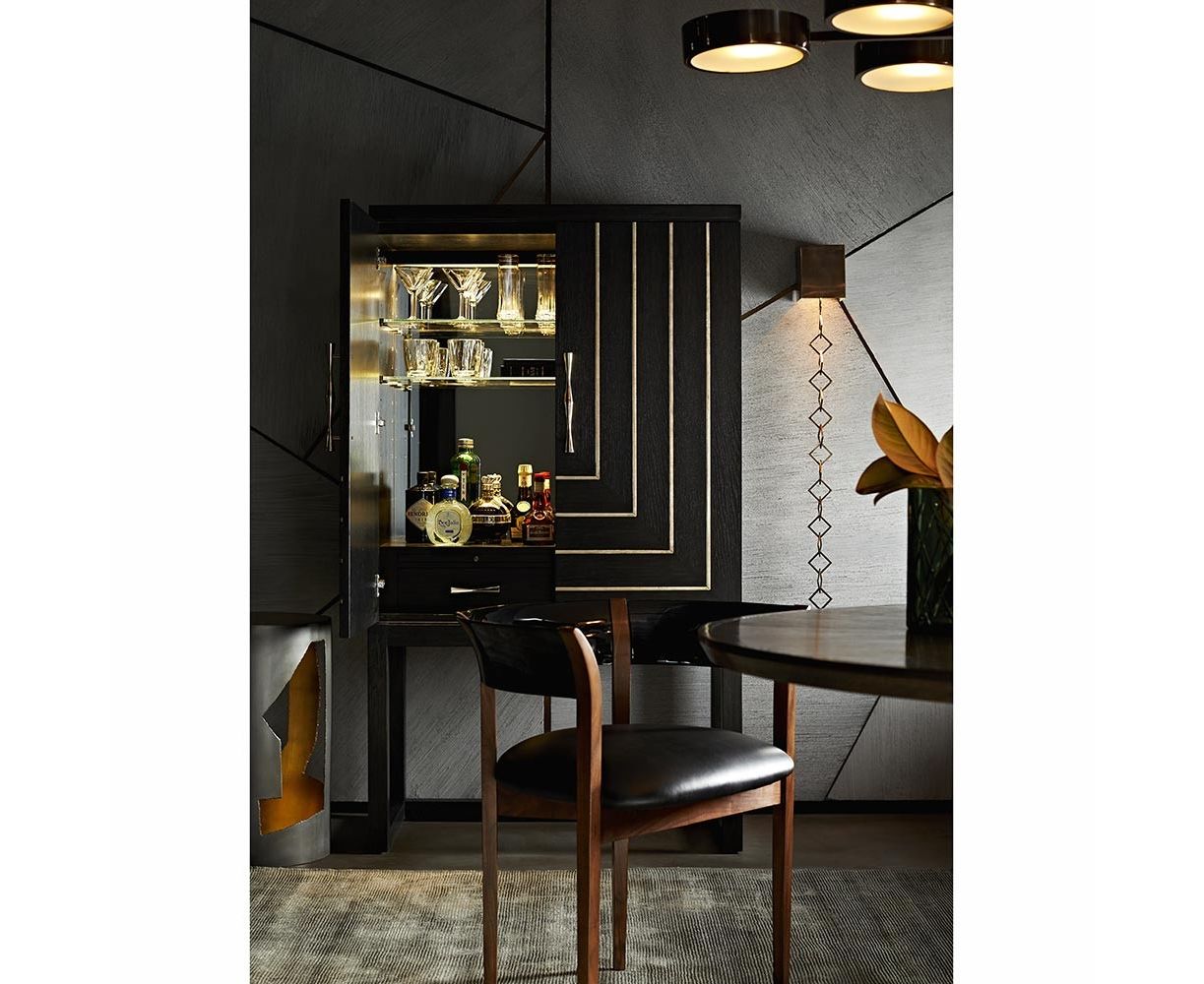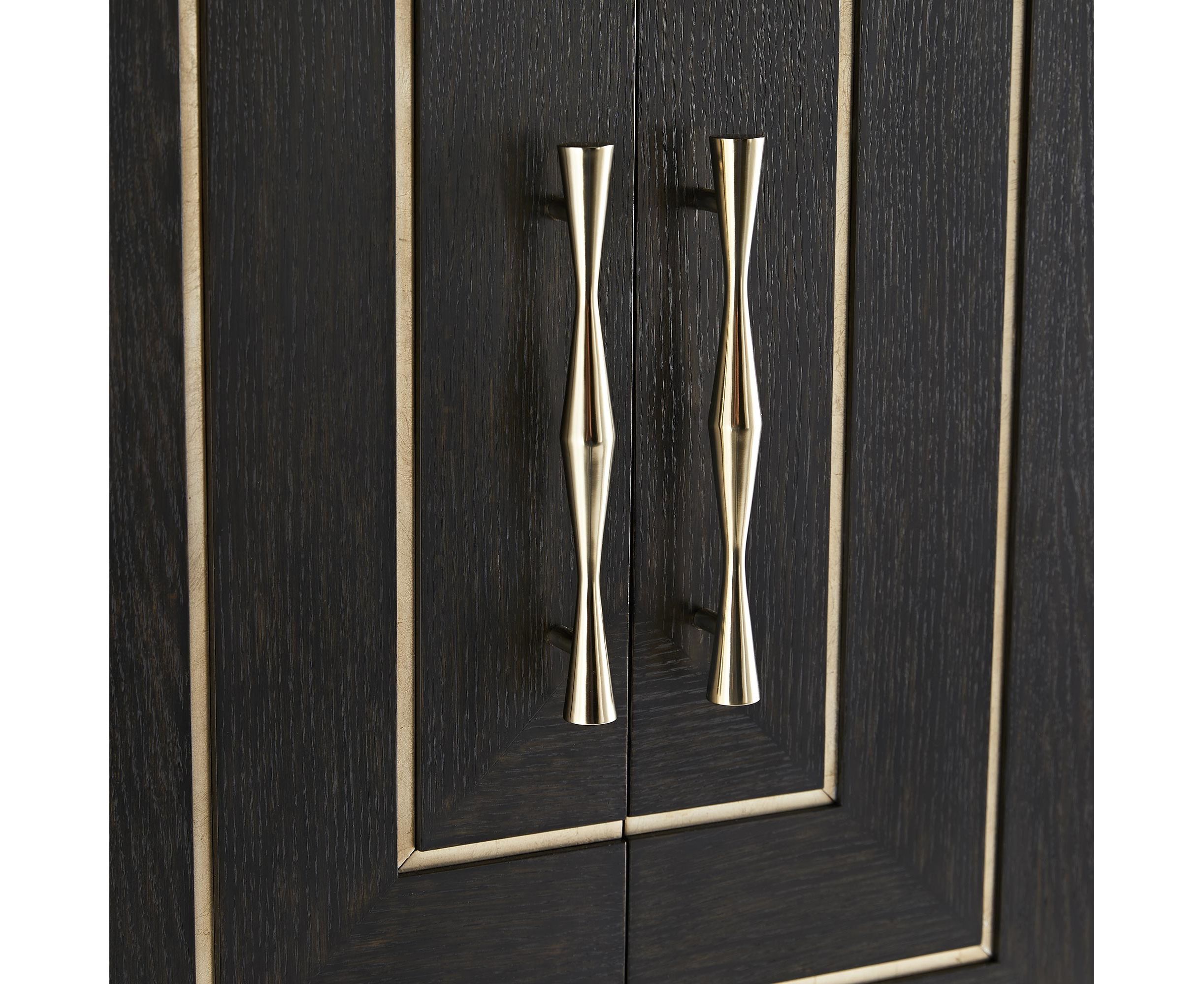 Стиль и элегантность собрались вместе в этом забавном шкафу-витрине. Построенный из массивного дуба, он полностью отделан мраморным шпоном со светящимися акцентами латунных ручек ,цвета шампанского и деталями инкрустации из фольгированного стекла. Откройте двери и увидите две регулируемые стеклянные полки и зеркальную заднюю стенку, освещенную светодиодами, скрытыми в дизайне. Внутри вы также найдете два выдвижных ящика и выдвижной столик. Ножки соединены скобой и выравнивателями, чтобы поддерживать устойчивость.